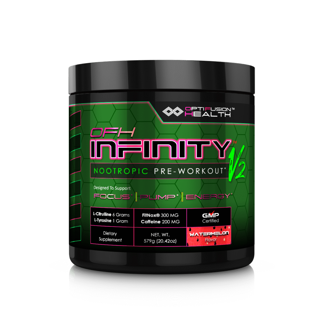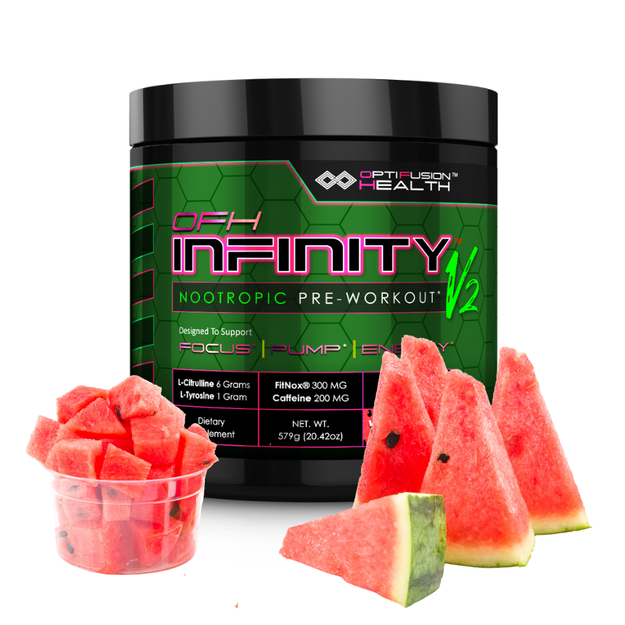 Infinity Pre-Workout V2 is a next-gen nootropic pre-workout with 6g Citrulline, 3.2g Beta-Alanine, FitNox®, VasoDrive-AP®, Theobromine, Alpha GPC, and dual-source caffeine (Caffeine + Infinergy™) for clean, powerful energy, focus, and pump support—now available in refreshing Watermelon flavor.